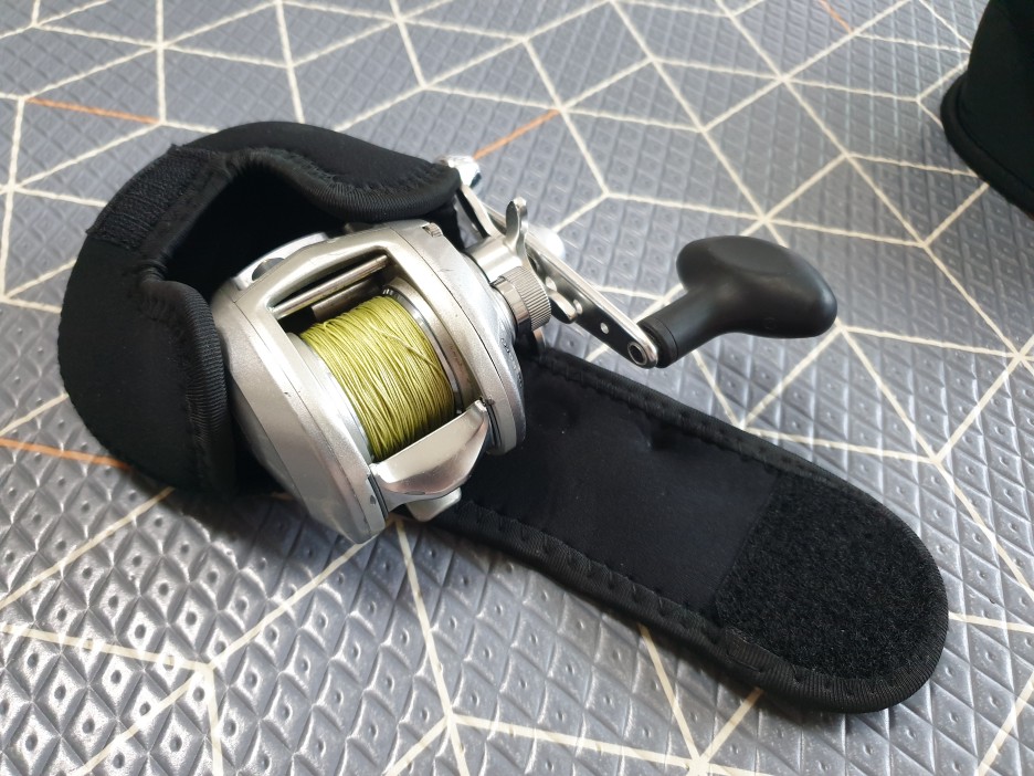 아래처럼 베이트 릴 파우치는 몸체만 보호하고, 릴 손잡이는 밖으로 나오는 타입입니다.